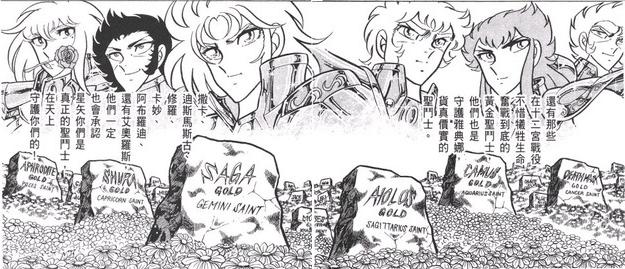 del manga Next Dimension Siendo un lugar que por lo general se evita, el cementerio ha sido el centro de atención en la saga de Hades, ya que es aquí donde la guerra santa del siglo XIX comenzó realmente, la invasión del Santuario empezó aquí. De hecho, el dios Hades unió a su causa a muchos de los Saints de Atenea enterrados aquí y estos últimos, después de haber jurado lealtad al dios del Inframundo, volvieron a la vida saliendo por sí mismos de sus propias tumbas. Asimismo, en el manga precuela Episode G, un ejército invisible de soldados de los Titanes intenta acceder a los 12 templos atravesando este lugar, siendo detenidos por el Gold Saint de Acuario, Camus, que los abate a todos con su Diamond Dust.
