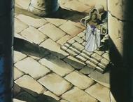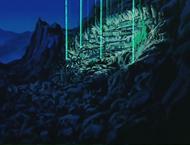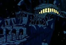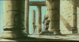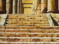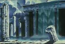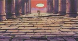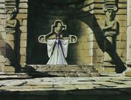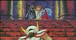 En el fondo del templo junto a la pared de la montaña existe una especie de altar ligeramente elevado con respecto al suelo en el que hay un hueco flanqueado por dos esculturas que representan figuras humanas con los brazos cruzados, y en el centro una cruz de piedra donde la diosa Eris tiene maniatada a Saori para extraer su energía vital con la ayuda de la manzana de oro, con la intención de regenerar su carne y su sangre, y recuperar así su cuerpo.