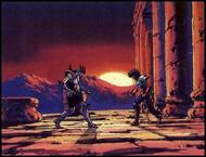 sobre Saint Seiya Antes de todo, fue bien difícil transcribir esta imagen, parece un texto en griego bien producido, pues presenta toda la acentuación y puntuación tradicional. Transcribiendo al latinizar y traduciendo dice :