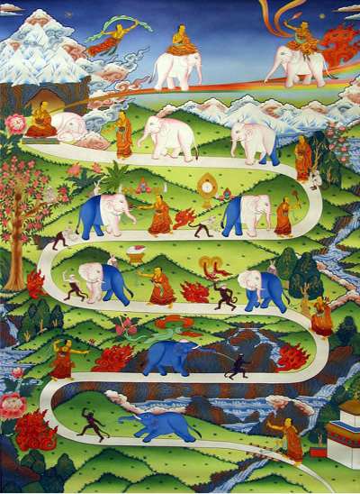 El despertar o estado de Buda Literalmente, la palabra "Buda" significa "Iluminado" o "Despertado". Se trata de un estado de conciencia total y de gran sabiduría, que permite comprender plenamente la realidad en toda su complejidad. Todo ser humano que despierta a la verdad fundamental de la vida puede ser designado por la palabra "Buda" .. Sin embargo, muchas escuelas budistas han enseñado que la iluminación se alcanza sólo después de una ardua empresa, durante períodos de tiempo increíblemente largos, o en el curso de varias vidas. Por contra, y es sorprendente, el Sutra de Lotus, considerado como el maestro último de Shakyamuni, explica que la budeidad está ya presente en la vida de las personas. Enseña la igualdad absoluta entre todos los seres e insiste en que la gema sin pulir del estado de Buda existe incluso en la vida de una persona aparentemente dominada por el mal. No hay alguien que nos lo da ni nadie que tenga el poder de decidir si lo "merecemos". Así como el oro puede esconderse en una bolsa, o las flores de loto emergen de un estanque fangoso, primero debemos creer en la existencia del estado de Buda en nosotros mismos, luego despertarlos y desarrollar o "pulirlo". Pero la budeidad no es estática. No es un estado de vida en el que podamos eternizarnos con complacencia. Al contrario, se trata de una experiencia dinámica y de un viaje de desarrollo y descubrimiento perpetuos. Cuando fortalecer permanentemente la budeidad en nuestras vidas, logramos ser cada vez menos dirigidos por el egoísmo (o la codicia), la ira y la estupidez (lo que el budismo designa como los tres venenos). Armonizando nuestras vidas con la vida iluminada de Buda, podemos aprovechar el potencial que está dentro de nosotros y experimentar una transformación fundamental .. Los diez estados (o diez mundos) El budismo se preocupa esencialmente de nuestro estado de vida, es decir, la alegría o el dolor que vivimos en cada momento. Este estado de vida depende de la interacción entre las condiciones externas y nuestras tendencias íntimas, las mismas condiciones (el mismo lugar de trabajo, por ejemplo) que serán experimentados por una persona como una implacable angustia pueden ser la fuente de un desafío exaltante y de satisfacción para otra. El fortalecimiento de nuestro estado interior, de forma a poder soportar las más duras condiciones y las más negativas, o incluso a transformarlas, es el propósito de la práctica budista. Basándose en su lectura del Lotus Sutra, el maestro budista chino T'ien-tai (siglo VI) desarrolló un sistema que clasifica la experiencia humana en diez estados o "mundos". Esta enseñanza de los diez estados (o diez mundos) fue aprobada y desarrollada por Nichiren, que hizo hincapié en la naturaleza subjetiva de estos mundos: "A la cuestión de dónde se encuentran exactamente el infierno y el Buda, un sutra responde que el infierno existe bajo tierra, y otro dice que el Buda se encuentra al oeste. Sin embargo, una investigación más profunda revela que ambos existen en nuestro cuerpo. " Entonces, ¿cuáles son estos diez estados? Aquí están, ordenados del menos deseable al más deseable: * El infierno, un estado de desesperación en el que el individuo se encuentra totalmente abrumado por el sufrimiento; * La codicia (o mundo de los espíritus hambrientos), un estado dominado por un insaciable deseo; * La animalidad, un estado de los impulsos de miedo más fuertes y de intimidación al más débil; * La cólera, un estado que se caracteriza por un deseo de competición desenfrenado para superar y dominar a los demás, y por la pretensión ser bueno y sabio. Estos cuatro estados son designados como las cuatro malas vías, a causa de la negatividad destructiva que las caracteriza. * Luego está la humanidad, un estado de paz marcado por la capacidad de razonar y emitir juicios serenos. Aunque es característico de nuestra identidad humana, este estado puede representar igualmente un equilibrio frágil que cede su lugar a uno de los estados inferiores cuando se enfrenta a condiciones negativas. * La felicidad temporal es un estado de alegría generalmente sentido cuando el deseo es satisfecho o cuando el dolor se ha disipado. Los mundos enumerados hasta ahora son a veces agrupados bajo el término de "seis mundos inferiores." En su conjunto, representan todas las reacciones a los cambios en las condiciones externas, después de lo cual sentimos una verdadera falta de libertad y autonomía. Lo que el budismo designa como los cuatro nobles caminos corresponde al esfuerzo de vivir con integridad, la compasión y la libertad interior. El estado de estudio describe un estado de aspiración al despertar. El despertar personal indica la capacidad de percibir por sí mismo la verdadera naturaleza de los fenómenos. Ambos estados son a veces identificados como los dos vehículos pues las personas que los manifiestan han despertado parcialmente y se han liberado de sus deseos ilusorios. Pero pueden estar marcados, y en muchos textos budistas, el Buda amonesta a los individuos de ambos vehículos por su egoísmo y su complacencia. El estado de bodhisattva es un estado de compasión en el que se superan las limitaciones del egoísmo y se trabaja incansablemente por el bien de los demás. El Budismo Mahayana hace especial hincapié en el Bodhisattva, como un ideal de comportamiento humano. La budeidad es un estado de plenitud y perfecta libertad, en el que se puede disfrutar de un sentido de unidad con la fuerza de la vida del cosmos. Para una persona en el estado de Buda, todo (incluyendo las inevitables pruebas de la enfermedad, la vejez y la muerte) puede ser visto como una oportunidad de alegría y satisfacción. El estado de vida interior del Buda que se manifiesta externamente por una abnegada dedicación altruista y por acciones específicas propias de los bodhisattvas. Esto nos lleva a un aspecto esencial de la comprensión de los diez estados por Nichiren: cad