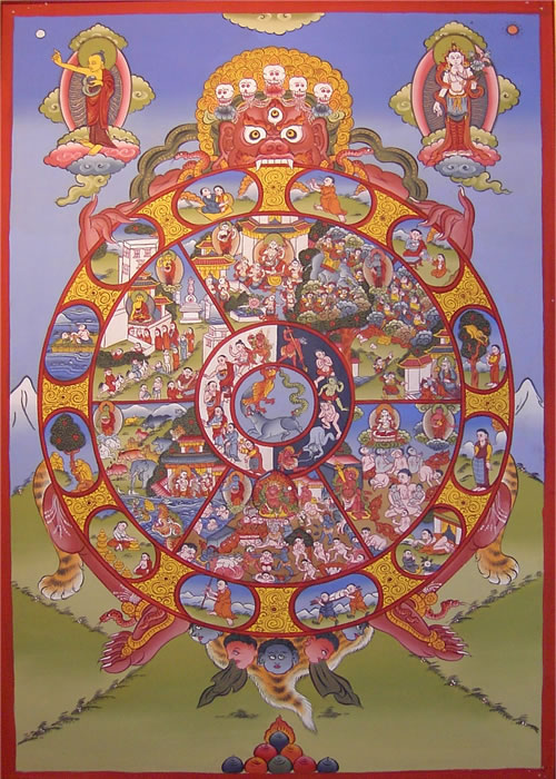 La técnica que usa Shaka se llama Rokudou Rinne (Ciclo Eterno de Renacimiento por los Seis Reinos) y no te "mata" sino que te manda directamente a tu proxima vida (que práctico!). Shaka llama a los Caballeros de Bronce "fantasmas hambrientos" y cuando lanza su técnica con Ikki lo manda al Ashura (osea, el Infierno). Tambien Shaka nombra como sitio más peligroso al Cielo (o sea, donde reencarnas como un Dios Hindú) eso es porque a pesar de que el budismo no niega la existencia de dioses, no les atribuye ninguna importancia especial. La vida de los dioses en el cielo es larga y apacible, aunque están sujetos a los mismos problemas que puede tener cualquier otra criatura, por lo que están expuestos a una eventual muerte y a una futura reencarnación en un estado de existencia inferior. No son los creadores del Universo, ni tampoco controlan el destino de la humanidad, por lo que para el budismo, el rezar o hacerles sacrificios no tiene ninguna utilidad. De las distintas modalidades de reencarnación, la humana es la mejor, porque las deidades están tan absortas en sus propios placeres que pierden de vista la necesidad de redención. Por lo tanto, la posibilidad de ser un iluminado es válida sólo para los seres humanos. En el Budismo se plantean 6 posibilidades para tu siguiente reencarnación según la doctrina Karma. El karma se basa en los actos de cada persona y en las consecuencias morales que se desprendan de ese proceder. Los actos humanos determinan su posterior reencarnación, por lo que las buenas acciones lógicamente serán recompensadas, como serán castigadas las malas. Por eso el budismo sostiene que no existen en el mundo los placeres inmerecidos ni los castigos injustificados, sinó que todo es más bien producto de una justicia universal. El proceso kármico actúa por medio de una ley moral natural, más que por medio de un sistema de juicio divino. El karma de cada individuo determina asuntos tales como su belleza, su inteligencia, su longevidad, su salud y su nivel social. De acuerdo con las enseñanzas de Buda, dependiendo del tipo de karma que tenga cada persona, puede reencarnarse en un ser humano, un animal, un fantasma hambriento, un guerrero, un habitante del infierno o incluso en alguno de los dioses de la religión hindú. Los 6 infiernos son simplemente una manera para Kurumada de colocar un poco más de simbolismo hindú entorno a Shaka, y que cuando dibujaba esta parte él había previsto la parte Hades así como los combates en el verdader infierno de la historia: el Mekai. Ya que las dos cosas están en contradicción, los 4 mundos "infernales" (los infiernos verdaderos sin el paraíso y el mundo humano) están un poco como ciertas prisiones del Mekai pero que no presentadas como tales allí, con el fin de ser coherente con el espíritu de la metempsicosis percibido por las religiones hinduistas y budistas. Kurumada hizo una mezcla interesante, un santo bañado literalmente en una cultura y una religión, hasta el más mínimo detalle. A to Z Photo Dictionary LOS MUNDOS DEL SAMSARA Entre los budistas, todos los seres vivos nacen en uno de los seis estados de la existencia (Samsara en Sánscrito, el ciclo de la vida y de la muerte). Todos están atrapados en esta "rueda de la vida," como la llaman los tibetanos. Todos los seres dentro de los seis reinos están condenados a la muerte y al renacimiento en un ciclo infinito, a menos que pueden romper libremente sus ansias de deseo y alcanzar la verdad. Además, más allá de la muerte, todos los seres renacen en un reino más bajo o más alto dependiendo de sus acciones en vida. Esto implica el concepto del karma y de la recompensa Karmica. Tengan en cuenta que no sólo se pierde la memoria cuando se renace, sino que no hay garantía de volver a otra vida como un ser humano. Cada individuo puede entrar en cualquiera de los seis reinos. En el Budismo se plantean 6 posibilidades para tu siguiente reencarnación según con la doctrina Karma. El karma se basa en los actos de cada persona y en las consecuencias morales que se desprendan de ese proceder. Los actos humanos determinan su reencarnación posterior, por lo que las buenas acciones lógicamente serán recompensadas, como serán castigadas las malas. Por eso el budismo sostiene que no existen en el mundo los placeres inmerecidos ni los castigos injustificados, sino que todo es más bien producto de una justicia universal. El proceso kármico actúa por medio de una ley moral natural, más que por medio de un sistema de juicio divino. El karma de cada individuo determina asuntos tales como su belleza, su inteligencia, su longevidad, su salud y su nivel social. De acuerdo con las enseñanzas de Buda, dependiendo del tipo de karma que tenga cada persona, puede reencarnarse en un ser humano, un animal, un fantasma hambriento, un guerrero, un habitante del infierno o incluso en alguno de los dioses de la religión hindú. Hablando espiritualmente, la existencia humana está dividida en diez mundos. De estos mundos los seis primeros se pueden representar como segmentos de una rueda que gira sin fin; los cuatro últimos se ven como pisos de una gran montaña. Los tres estados más bajos se llaman las tres trayectorias malvadas, o tres malos estados. Los japoneses enumeran seis, esos seis mundos pertenecen al Samsara, el mundo de la ilusión en donde la realidad se distorsiona debido a la acción del ego. Los mundos pertenecen al Nirvana, el mundo de la conciencia pura en donde la realidad es experimentada directamente, en grados crecientes, sin las interpretaciones del ego. La meta del Chan es llegar a la cima de la montaña, es decir, experimentar la vida espontáneamente, sin subordinar toda la información que nos llega a los mandatos e interpretaciones del ego. Debido a la importancia de entender desde el principio y exactamente lo que significan estos dos términos, Samsara y Nirvana, o bien Forma y Vacío como se les llama comúnmente, ilustraremos l