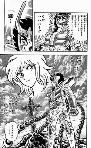 Controversias argumentales No fue una buena idea que la trama se centrara en el secuestro de Athena, preferiblemente hubiera sido mejor que los demás Saints desconocieran esa situación en ese momento. La orden era detener a Aioros por intentar matar a Athena obviamente, pero el hecho que los Saints prácticamente mataron a su diosa resulta difícil de digerir. Si los 3 implicados sabían la verdad sobre Saga y sus planes se podría entender, pero sin mayor explicación eso no fue adecuado. Las palabras finales de Shura han provocado mucho debate en la comunidad de fans, están sujetas a interpretación, su acto puede ser considerado malévolo o bondadoso. La acción final de Shura queda al libre discernimiento del lector. Los fans de Shura pueden opinar todo a favor de él (para que no quede como un tonto), pero la verdad es que no hay nada explícito. Eso de que Athena revive si muere es bastante controversial. Un deus ex machina medio raro de Kurumada. Una cosa es que Afrodita, Shura y Death Mask sigan al maestro malvado y sepan que Athena no está en el Santuario, hasta ahí es comprensible, pero otra cosa es que en una página Shura sea un Saint digno y en la otra un sinvergüenza. Que afirme que Athena revivirá no nos sirve… en ese momento Afrodita y Death Mask deberían haber arrestado a Shura. Es posible que en el fondo Shura sepa que Aioros, o más bien Atenea, hayan podido sobrevivir de alguna manera a la caída, puesto que la diosa, aun siendo un bebé ya demostró de sobra sus dotes a ojos del propio Shura en su encuentro previo. Cómo diosa que es, es posible que de alguna manera haya amortiguado la dureza del impacto de la caída. Parece como que Shura cumplió con su deber y obedeció las órdenes dadas por el Pontífice pero su encuentro con Aioros y el bebe de Atenea de alguna manera lo motivó para darles una pequeña oportunidad, por eso les dice a Death Mask y Afrodita que han muerto y no vayan tras ellos.