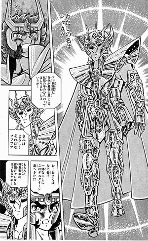 de Capricornio Se nos brindan más datos acerca de la personalidad de Shura y su relación con Aioros. Shura se muestra como un Saint estricto y disciplinado al ser uno de los mayores en el Santuario hace 13 años (incluso Afrodita y Death Mask le obedecen durante la persecución final de Gold Saint de Sagitario, sorprendente viniendo de ellos). Pese a que respeta a sus compañeros, es consciente de su falta de experiencia y poder para ser candidatos al puesto de Pontífice, aunque Shion le recuerda que sus palabras pueden ofender a sus compañeros. Cuando el supuesto traidor llega a la casa de Sagitario, Shura es retratado como alguien indignado e incrédulo por la supuesta rebeldía de Aioros, creyendo que este vendería a la bebé Athena a Hades (cosa alejada de la realidad) y le ofrece ayudarle en su suicidio, mostrando una actitud muy similar a la de un samurái, similar a Izo de Capricornio, su antecesor, aunque no presentara esta cualidad 13 años después en su enfrentamiento contra Shiryu. Al momento final de la persecución, Shura permanece en silencio mientras los Gold Saints de Cáncer y Piscis atacan a Aioros, no participando hasta el momento de dar el golpe final como un acto de misericordia: corta el puente que separa el Santuario con el resto del mundo, diciéndole a sus compañeros que con eso debería bastar y que Athena renacería en el Santuario, derramando lágrimas. Su personalidad en el manga original no es diferente a la de Zero realmente. Se muestra frío y serio, terco y pesado. Lo único que es nuevo seria que Kurumada al fin se sacó la espinita de darle un toque samurái. Él mencionó en cierta ocasión que había concebido a Shura como un Saint con un trasfondo samurái, pero que finalmente eligió darle elementos más occidentales, como un caballero de las leyendas artúricas. Pero por lo que parece Kurumada siempre siguió pensando en los elementos de samurái, que incorporó en Next Dimension en Izō y esta vez lo hizo también evidente en Shura. Se confirma la multiculturalidad de Shura: un español, que usa una espada inglesa como técnica, sigue una creencia griega y tiene un nombre (y código) japonés. El nombre de Shura sólo evidencia el trasfondo de samurái que Kurumada tenía pensado para él hasta que se decidió a hacerlo más europeo. Shura es un nombre por el que se conoce en el budismo japonés a los Asura, feroces demonios combatientes de la mitología hindú y budista. Kurumada mencionó que quiso darle ese nombre para proyectar la ferocidad de Shura como guerrero, aunque luego lo hizo español. Shura también actúa como un samurái en el manga original... No debemos dejarnos llevar por la absurda idealización occidental de los samurái, que suele presentarlos como seres compasivos, disciplinados, admirables, guerreros valientes y abnegados. Nada más alejado de la realidad. Los samurái de verdad nunca fueron así. El código del Bushidō que mencionaba esos ideales apareció ya en las épocas tardías de los samurái, y la mayoría ni antes ni después se apegaron a eso. Eran bastante arrogantes, abusivos, problemáticos, ya que eran de una de las clases nobles abusaban bastante de la gente común. Cobardes e hipócritas es una forma más realista de describirlos. Basta leer cualquier libro de historia para darse cuenta. Llegaron a ser una carga para el estado y ya no digamos el extremo problema que fue para Japón los rōnin, que básicamente eran grupos de delincuentes que no hacían nada más que acabar con todo. No por nada fueron abolidos como clase en el siglo XIX porque mantenían a Japón bajó opresión y en el retraso feudal porque simplemente no querían dejar sus privilegios. Para informarse podemos recomendarles la lectura del manga Kozureōkami de Kazuo Koike y Goseki Kojima, un clásico que adapta la sociedad japonesa de la era Tokugawa con pasmosa exactitud a la realidad. Los samurái no eran para nada el arquetipo idealizado occidental. Shura en el manga original tiene toques y se comporta como un samurái pero Kurumada lo suavizó y le dio más características de un caballero medieval europeo, él mismo lo dijo porque aunque lo concibió más como un samurái, le pareció muy cliché y por eso le dio esas otras características. En Episode Zero le vuelve a dar más detalles de samurái, elementos que también utilizó en Capricorn Izō. El hecho que Shura no denote ser un guerrero noble, admirable, compasivo y valiente, no significa que no esté actuando como un samurái, ni en el MO ni en Zero. Su actitud es bastante cercana a como fueron los samuráis. Shura es más o menos un mix de ambos tipos de guerrero, samurái y caballero medieval europeo, pero más parece encarnar sólo las características negativas de estos. Se supone que debe representar los ideales que ellos mismos representan pero no tiene nada de eso. En Episode Zero el personaje en sí es una incoherencia total, no tuvo ningún desarrollo psicológico, pasa de ser un buen tipo a un Saint irascible que colabora con el bando del mal. Kurumada destrozó a Shura, no se puede comprender que un Saint haya matado a su diosa, prácticamente le hizo el favor a Saga, esta situación literalmente elimina todo lo bueno que podría tener este Gaiden. Kurumada comete el grave error de involucrar al bebé de Athena. Matan a Athena y los Saint se quedan como si nada, por más miserables que sean eso es ilógico. Los actos de Shura son extraños, quería rescatar a Atenea y a la vez castigar / matar a Aioros siguiendo el código samurái. Seguramente Kurumada quiso darle algo de color a un personaje que era muy plano y para eso inventó algo que no coincide para nada con lo que conocíamos en el manga clásico. Afrodita y Death Mask querían salvar a Athena pero de algún modo Shura se lo impidió. Muchos fans no entienden ni pueden asumir las controvertidas palabras y lágrimas finales de Shura, conforme si Athena muere revivirá después en el Santuario. Shura pe