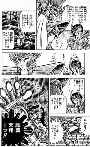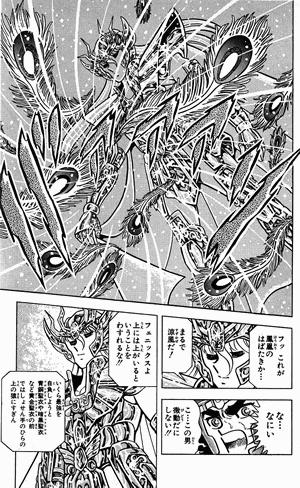 del índice: ______________________________________________________ La narración posee 31 páginas y la trama ocurre en Death Queen Island, lugar donde Ikki ganó el derecho a endosar su Phoenix Cloth y territorio de los Black Saints, revela acontecimientos que tuvieron lugar después de la derrota de Guilty. Tras ser desafiado, Ikki logra vencer a todos los caballeros negros fácilmente, entre ellos a su líder, el Don [首領: Shuryou: Leader] Jango. Cuando Ikki logra vestir finalmente su armadura, aparece Shaka, el caballero de Oro de Virgo, quien había ido a la isla para exterminar a los caballeros negros, y derrota a Ikki. Shaka consigue ver que realmente Ikki nunca ha sido poseído por la maldad si no que esconde su lado bueno dentro de él. Shaka borra de su memoria su combate y se va. Los Black Saints reconocen que Ikki es el más fuerte entre ellos e Ikki se convierte en el nuevo líder (Don). Es entonces cuando Ikki decide que es hora de regresar a Japón e irrumpir en el torneo Galaxian Wars.