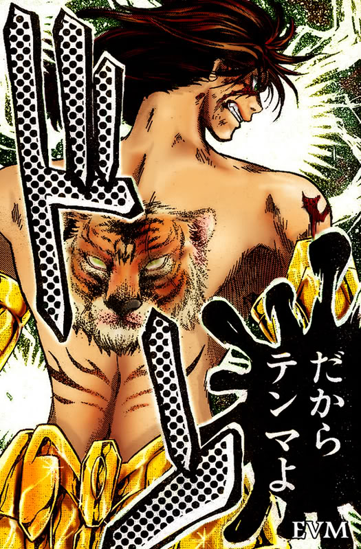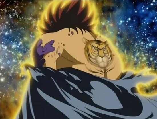 su verdadera apariencia, mostrando a un tigre en su espalda. Dohko toma