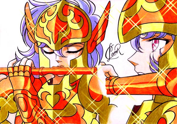 En Saint Seiya, el xilófono se asocia a un tema difícilmente olvidable por todos los fans de Saga y Kanon: las 4 pequeñas notas descendentes que suenan a cada evocación del misterio del Pontífice en la saga del Santuario, o en la casa de Géminis, que se volvieron emblemáticas del personaje.