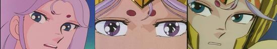 - Atenea: Bella, dulce, buena, empeñosa, pero al fin y al cabo la más inútil de las divinidades encarnadas en la Tierra ya que Abel, Poseidón y Hades resultan más efectivos a la hora del combate. Atenea nunca enfrenta un combate singular con los poderes que en teoría atesora (salvo en breves instantes con Hilda y Thor en Asgard). Siempre debe ser salvada por sus caballeros como una niña indefensa, aunque luego presta su cosmos a estos en la batalla, no se entiende porque no puede defenderse por si misma, mientras que los caballeros han jurado defenderla y son capaces de morir por ella.